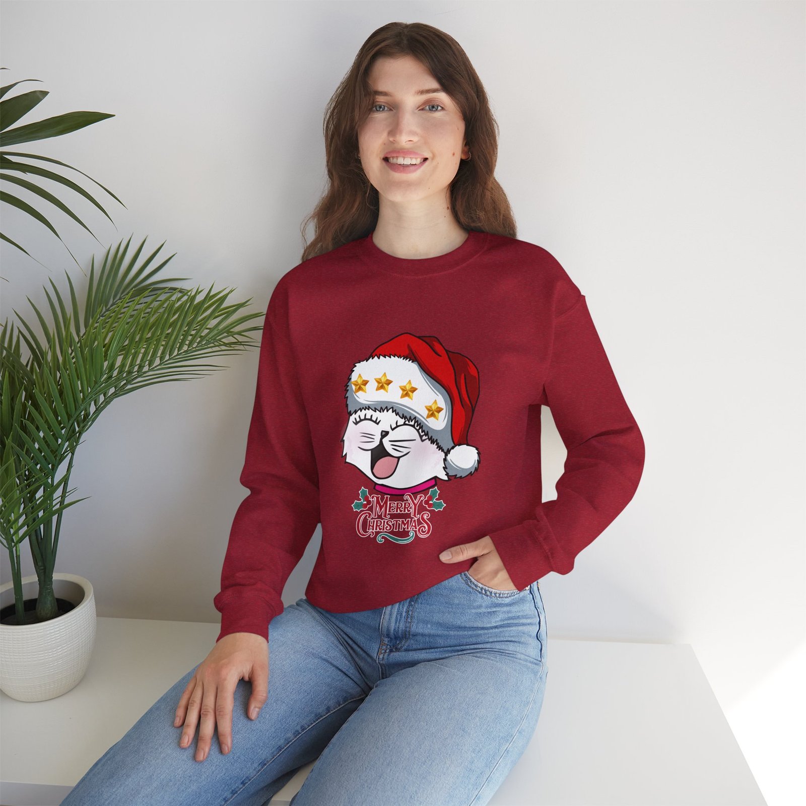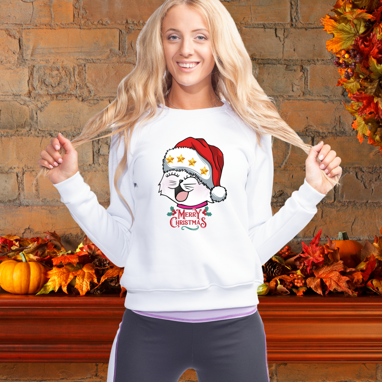A cozy and festive sweatshirt featuring a missy head design with Christmas and Marra Christmas elements like a hat with stars. Perfect for spreading holiday cheer and staying warm during the colder months. Ideal for those who enjoy unique and whimsical holiday apparel.