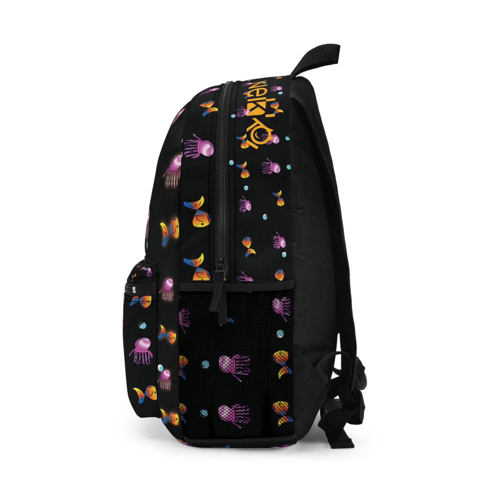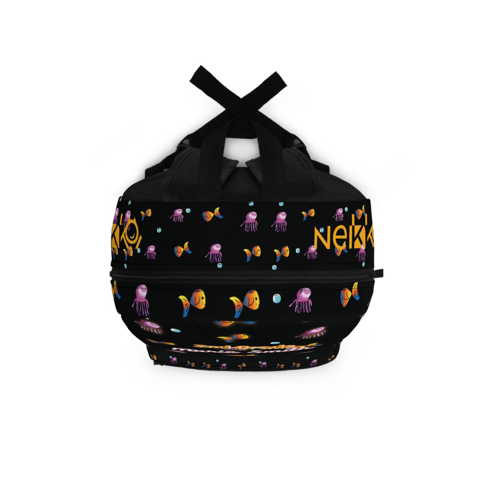 Customized Name for school, Colors Fish Bag, Back to School with Nekko, Nekko School bag, imágenes del cuento de nekko, Dark Background
