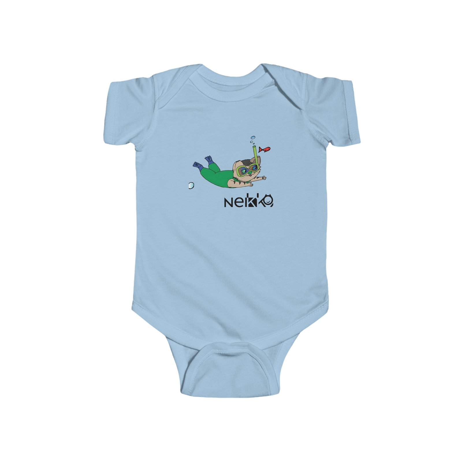 Sé el primero en valorar “Infant Fine Jersey Bodysuit, mameluco con imagen de nekko y tiburón en parte trasera”