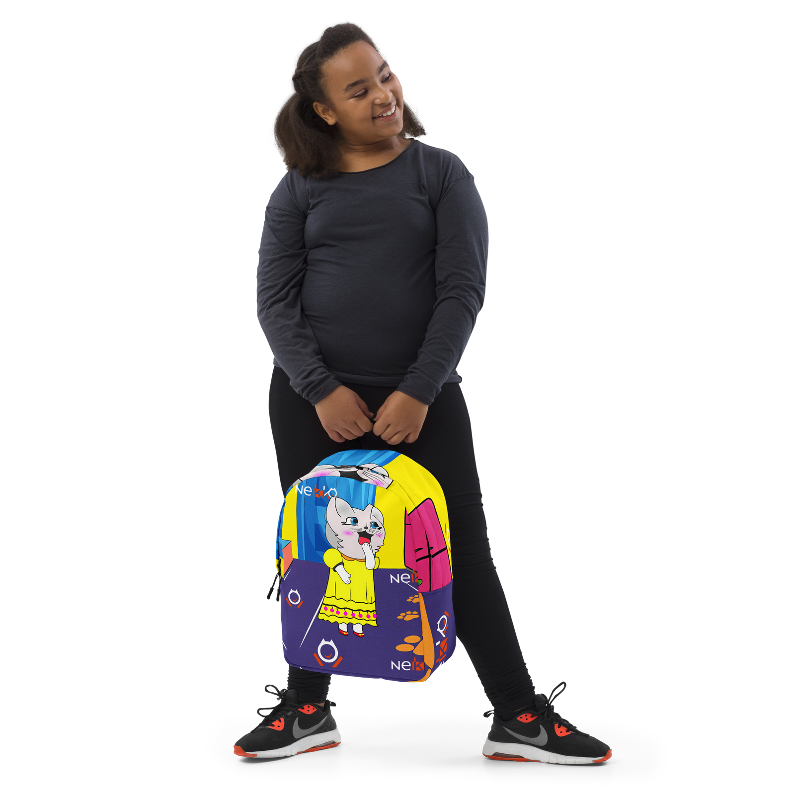 Si sientes que llevas la mitad de tus pertenencias contigo a todas partes, ¡la mochila de Missy es ideal para ti! Inspirada en el tierno y valiente personaje de «Las Aventuras de Nekko», esta mochila combina estilo y funcionalidad. Con un amplio compartimento interior, un bolsillo especial para tu laptop, y un bolsillo trasero oculto para tus objetos más valiosos, esta mochila está lista para acompañarte en cualquier aventura.