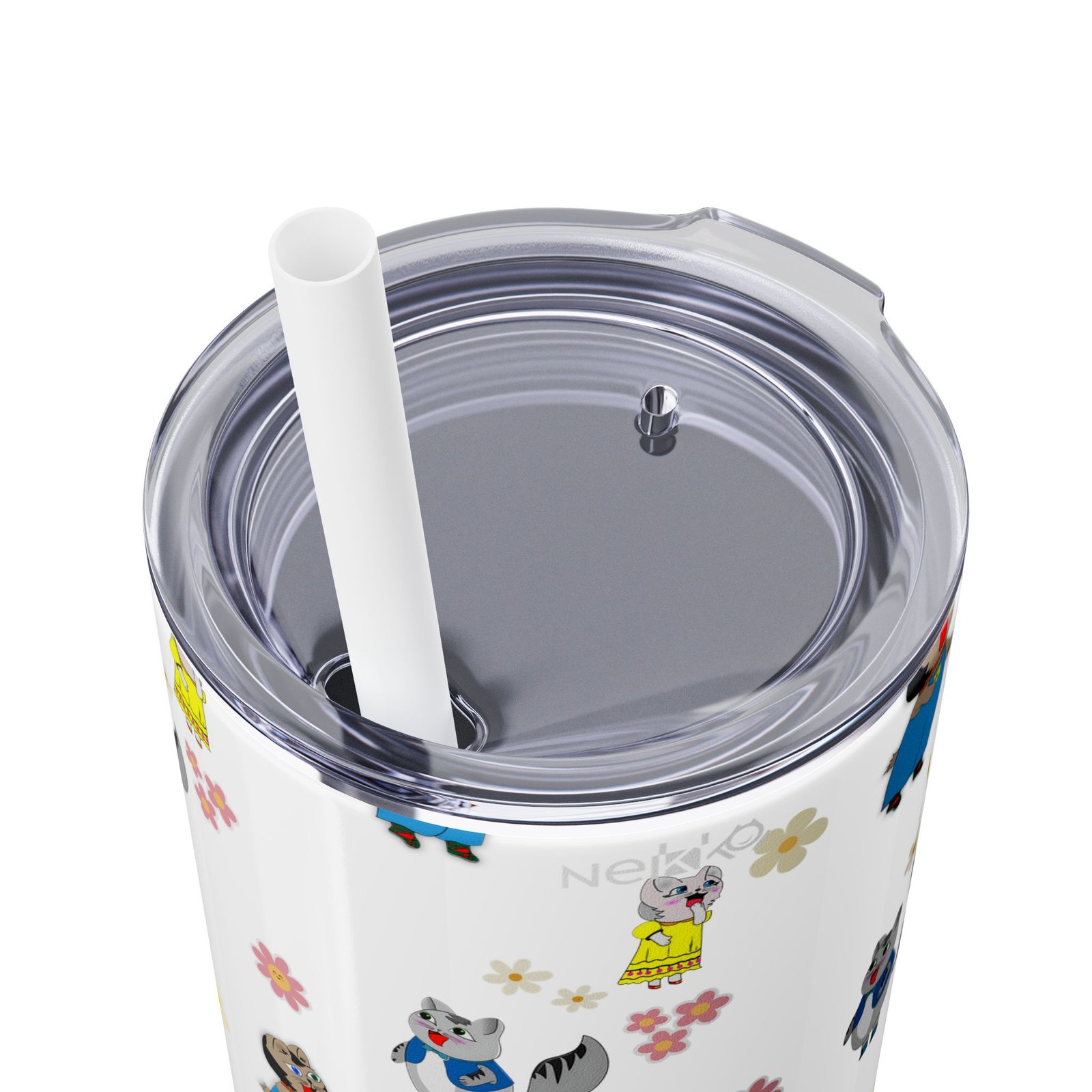 Skinny Tumbler with Straw, 20oz, Water Cup, Nekko School, Back to School With Nekko