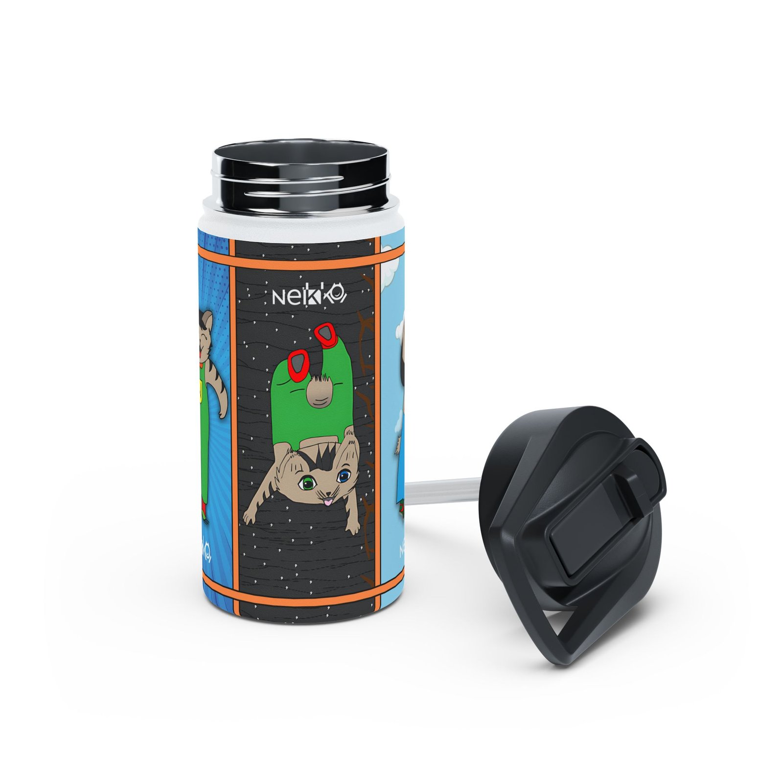 Quench your thirst in style with this stainless steel water bottle. Available in 3x sizes (12oz, 18oz, 32oz) this water bottle features a double-wall stainless steel build that keeps your drinks frosty for 24h and soothingly hot for 12h. This BPA-free, steel water bottle comes with a twist-on lid for easy sipping, making it excellent for daily use at work, at college, in the car, and beyond.